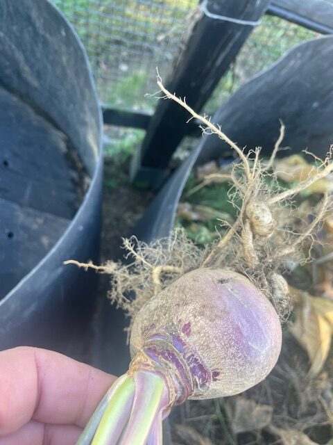- Rutabaga with large nodules on roots ; might be club root which persists in soil for years and could impact other brassicas planted there (bed F, on the side nearest to compost)